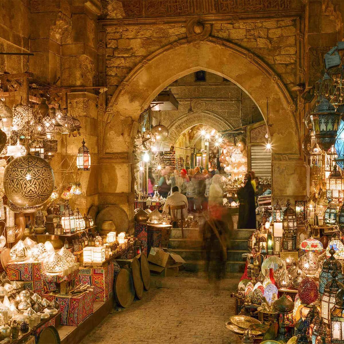 • Experience the vibrant ambiance of Cairo's historic market, Khan Al-Khalili Souq.